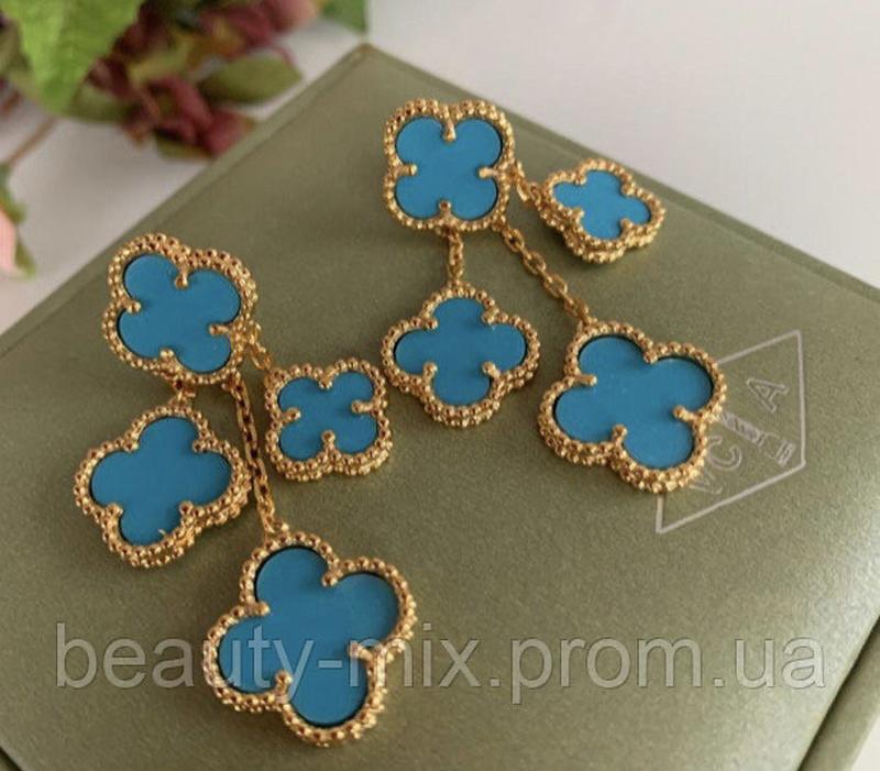 Серьги голубые vancleef ванклиф серебро с позолотой