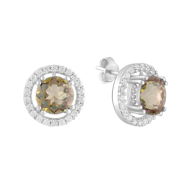 Срібні сережки з цитрином nano, фіанітами (2123019)