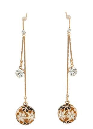 Серьги 960803 Красивые серьги с декором в виде шариков из цветов дополнит и украсит различные образы в повседневном, вечернем, романтическом и классическом стилях. Они подчеркивают индивидуальность, прекрасный внешний вид и вкус своей обладательницы, а также делают ее еще ярче и привлекательнее. Украшения пригодятся в гардеробе утонченных натур и любительниц современных нарядов. Они хорошо сочетаются с легкими шифоновыми блузами, нарядными платьями и даже строгими костюмами. Для изготовления товара применяется металл золотистого или серебристого цвета, в зависимости от модели. Материал отличается долгим сроком службы и устойчивостью к повреждениям. Он полностью безопасен в эксплуатации, не вызывает аллергических реакций, отлично держит форму, не деформируется, сохраняет первоначальный оттенок. В ассортименте представлено несколько расцветок сережек на выбор, благодаря чему каждая девушка сможет подобрать наиболее подходящий для нее вариант. Также атрибут украшен белыми стразами разного размера, которые завораживающе переливаются и мерцают на свету. Даже при длительной носке изделия не возникает чувство дискомфорта и боли, так как его вес совершенно небольшой.