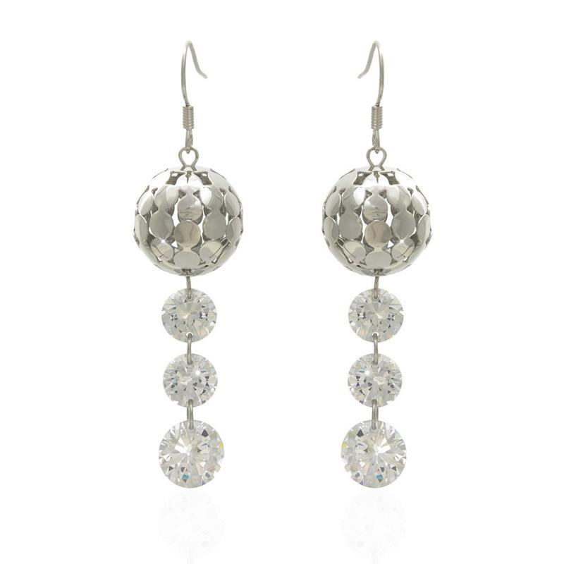 Сережки 959601 Сережки у формі ажурних кульок, доповнених ланцюжком із трьох стразів — прекрасне придбання для дівчат, яким подобаються неординарні прикраси. Оригінальний і привабливий дизайн підкреслює індивідуальність модниці та виразно натякає про її відчуття стилю. Попри зовнішню масивність, сережки легкі та не відтягують мочки. Гачок і велика декоративна куля представлені в золотистому та сріблястому відтінках. Усі деталі аксесуара виготовлені якісно й акуратно. Такі сережки чудово гармоніюватимуть зі святковими вбраннями та атрибутами, надаючи господині вигляду казкової принцеси. Прикраси виготовлені з матеріалів, стійких до потемніння. Застібка-петля подовжена. Вона міцна та зберігає початкову, придатну для якісної фіксації, форму навіть після довгої експлуатації. Гарні сережки підійдуть як для повсякденного використання, так і для свята. Завдяки оригінальному дизайну, атрибути добре поєднуються з багатьма стилями одягу. Креативна модниця може експериментувати зі стилем, поєднуючи атрибути з різними вбраннями.