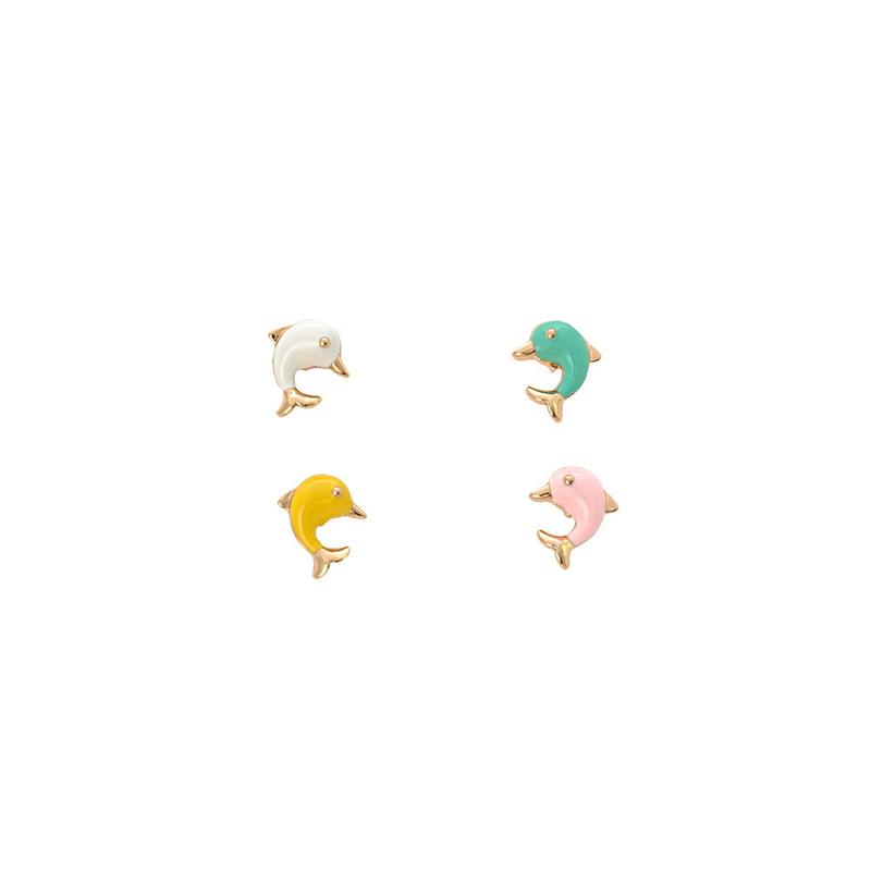 Серьги 828702 Маленькие серьги-гвоздики изящно смотрятся в любом образе — классическом, спортивном, праздничном. Их элегантная, округлая форма подчеркивает ушко, длинные, ухоженные локоны девушки, придает образу выразительный и яркий вид. Украшение прекрасно смотрится на модницах с любым овалом лица. Под уложенной прической будут ярко сиять серьги, придавая хозяйке уникальности и очарования. Специальный бижутерный сплав славится своей долговечностью и прочностью. В наборе представлена оригинальная модель в форме дельфинчика. Все формы точно прорисованы и выглядят максимально реалистично. Серьги сделаны в летних оттенках, которые внесут яркость в непогожий день. Материал полностью безопасный в использовании. Покрытие при контакте с водой или ультрафиолетом не теряет своих свойств, остается презентабельным продолжительное время. При снятии не возникает чувство дискомфорта и боль. Крепится атрибут на специальные винтики — их плотность прилегания можно регулировать по собственным ощущениям. Они туго фиксируются на ухе, не выпадают в процессе активных действий. Набор комплектуется парами. Их можно менять в зависимости от повода и настроения девушки. Изделие подойдет в качестве подарка маленьким принцессам, что любят удивлять внешним видом.