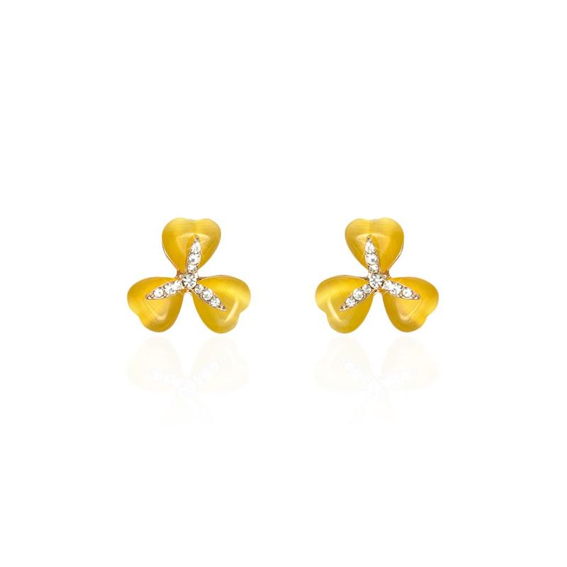 Сережки 965409 Стильні та незвичайні сережки-цвяшки стануть ідеальним доповненням різних образів. Вони актуальні в усі сезони та для різних подій. Аксесуар вигідно підкреслить індивідуальність, витончений і вишуканий смак власниці. Сережки матимуть чудовий вигляд як самостійна прикраса, так і в комплекті з іншими атрибутами. Основа виготовлена з якісного матеріалу, який має високу стійкість до пошкоджень. Прикраси повністю безпечні у використанні, не викликають алергічних реакцій, подразнення й почервоніння на шкірі. Сережки зберігають свій колір і привабливість, не тьмяніють, не окислюються під час контакту з водою. Верхнє напилення не втрачає своєї насиченості, зберігаючи ідеальний зовнішній вигляд атрибутів упродовж усього терміну експлуатації. Надійна застібка мінімізує ймовірність втрати прикраси. Аксесуари мають безліч переваг: вони легкі, невибагливі в догляді, безпечні у використанні та універсальні. Модель виготовлена як невеликий трилисник із серединкою зі стразів, що красиво мерехтять під сонячними променями. Немає гострих кутів і шорсткостей, повною мірою унеможливлює ризик пошкодити вухо. Асортимент представлений сережками однієї форми, але у великій кількості кольорів, що дає змогу підібрати ідеально відповідні до вбрання.