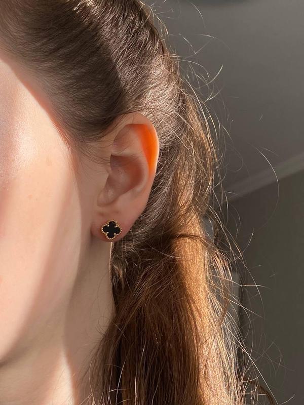 Тип: сережки Стиль: універсальний Матеріал: позолота Декор: емаль Колір: чорний Для кого: дівчині, жінці Паковання: якщо потрібне брендове подарункове паковання, уточнюйте в менеджера