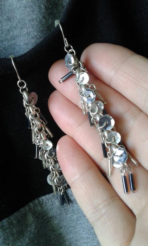 довгі сережки, посріблені з акрилу і бісером - ефектні і стильні до будь-якого вбрання, застібка з силіконовим наперском, довжина з вушком - 8 див.