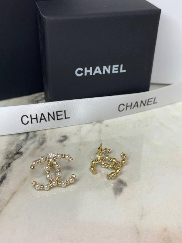 Брендові сережки гвоздики логотипи з перлами, ЛЮКС якість! Стиль: Класичний Матеріал: позолота Додатковий декор: перли Для кого: дівчині, жінці Паковання: якщо потрібне брендове подарункове паковання, уточнюйте в менеджера.