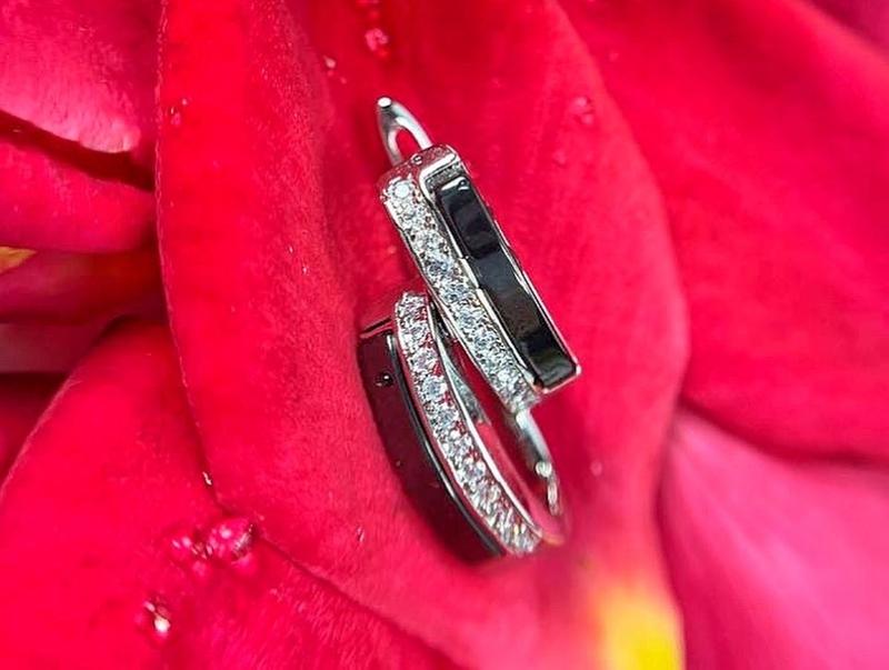 Сережки: - розмір 22*12 мм - камені циркони - неіржавка сталь - ширина 4 мм - кераміка