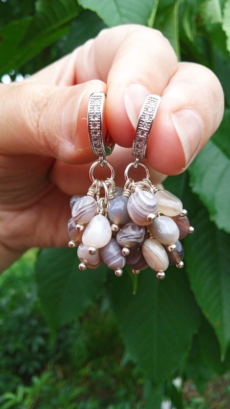 Авторські сережки з агату Ботсвана, швензи кільця гіпоалергенні з фіанітами. Пересилаю Укрпоштою, Новою поштою, міст.