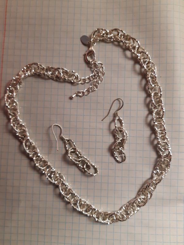 Сет набор цепочки серьги от ms идеальное состояние серебристый, браширированное покрытие