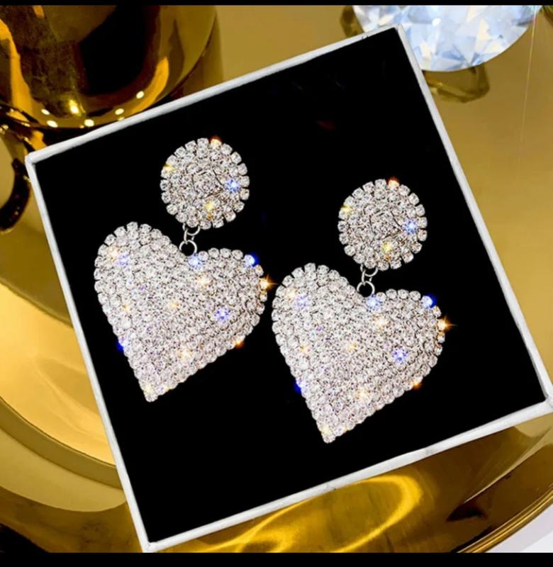 Розкішні сережки у формі серця. Сережки срібного кольору в Корейському стилі.