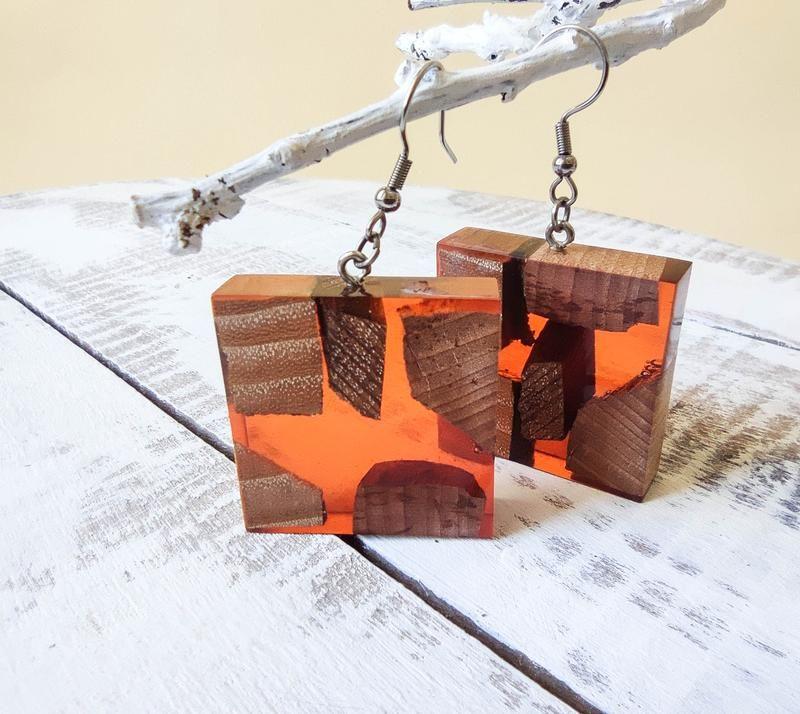 Що подарувати дівчині? - яскраві довгі сережки ручної роботи! Сережки-підвіски виконані з ювелірної смоли високої якості і деревини дуба. Смола має теплий червоний колір , Яскраві сережки підходять до різноманітних стилів одягу, відмінно освіжають образ і привертають увагу. Довжина самої сережки - 3,0 см з швенза 5,8 см Ширина - 3,0 см, товщина - 0,9 см. Швензи виконані з медичної сталі, при носінні не викликають дискомфорту. Ювелірна прикраса буде упаковано в красиву подарункову коробку, декоровану також вручну. Подарункову упаковку Ви отримуєте безкоштовно (коробка зображена на фото). Кращий подарунок дружині. Чудовий подарунок подрузі, подарунок сестрі. Подарунок на День народження, річницю весілля. Оригінальний подарунок дівчині. Подарунок на дерев'яне весілля. Додаткові характеристики: Колір: Бежевий Колір: Коричневий Колір: Червоний Колір: Помаранчевий Колір: Рожевий Матеріал: Фурнітура гіпоалергенна Матеріал: Дерево Матеріал: Медична сталь Матеріал: Епоксидна смола