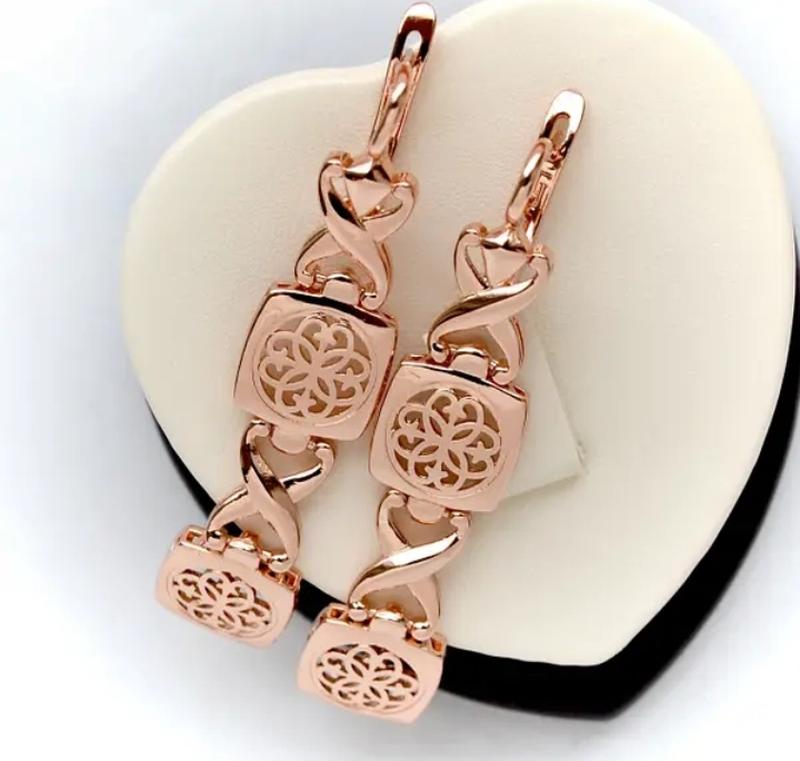 Покриття: рожеве золото 18к. Розмір: 55 х 12 мм. Вироби не бояться води і гарно носяться