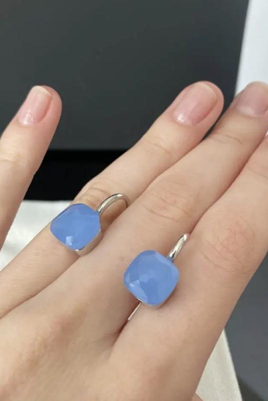 Помеллато/pomellato сережки посрібнення з одним квадратним каменем димчасто-блакитного кол...
