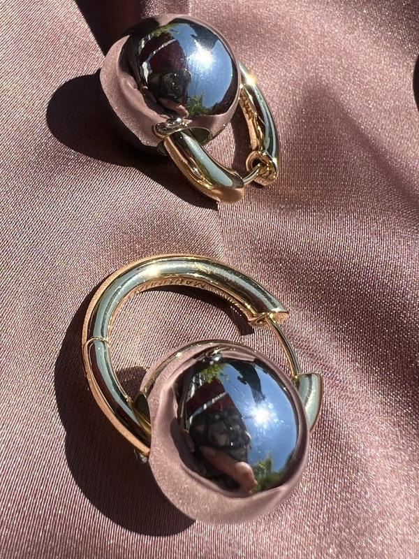 Сережки баленсіага круглі з кулею, посріблення та позолота 18к