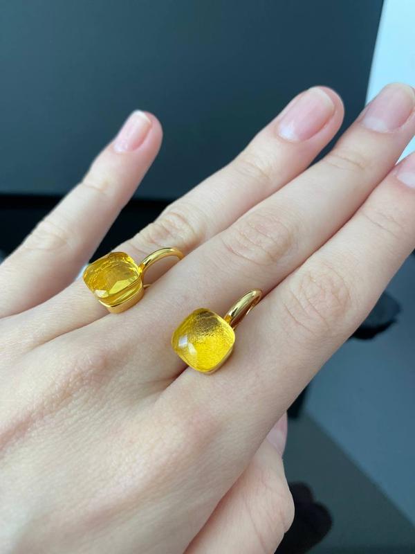 Помелато/pomellato сережки позолоту з одним квадратним каменем жовтого кольору / сережки з...