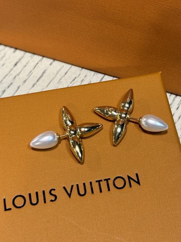 Сережки луї вюїтон у позолоті з додаванням перлинної краплі (можна набором)
