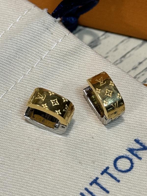 Сережки луї вюїтон позолота + сріблястіше з логотипом