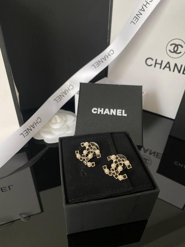 Брендові сережки позолота, чорно-білі. люкс якість/квотики стиль шанель