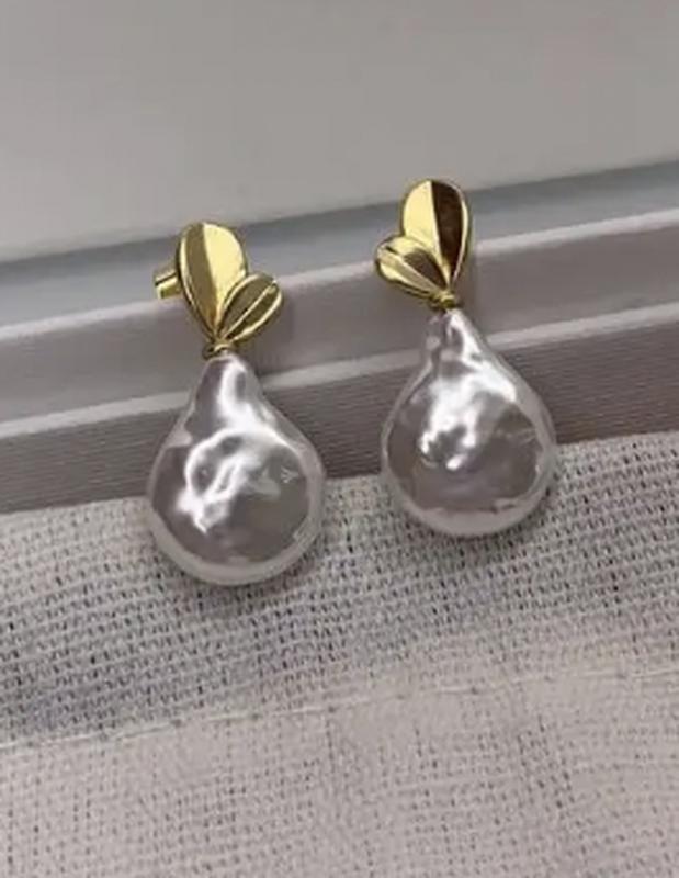 Сережки селін із перлами в лимонному золоті, люкс якість/сріблянки під золото з барчичними...
