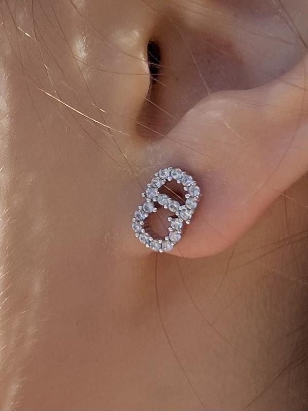 Сережки діор у вигляді логотипу з розсипом цирконію, позолота 18к