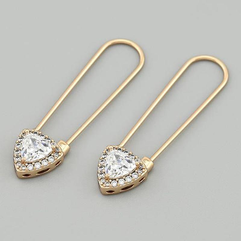 Сережки "англійська шпилька" з білими фіанітами із медичного золота