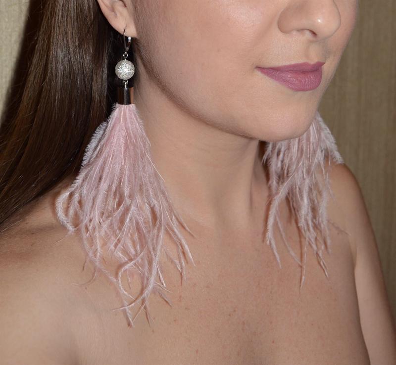 Пудрово-рожеві сережки з натурального пір'я