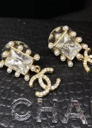 Сережки складаються з великого прямокутного кристала, обрамленого маленькими перлинами. Нижче кристала розташований логотип Chanel, зроблений із позолота та блискучим камінням. Відео - **********************************************************