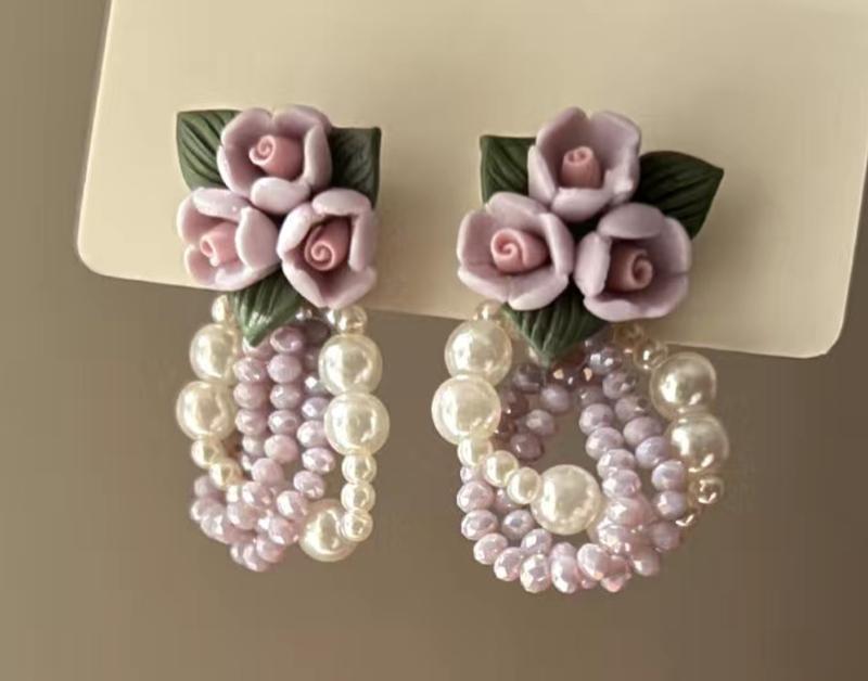 Сережки з квітами і перлинками