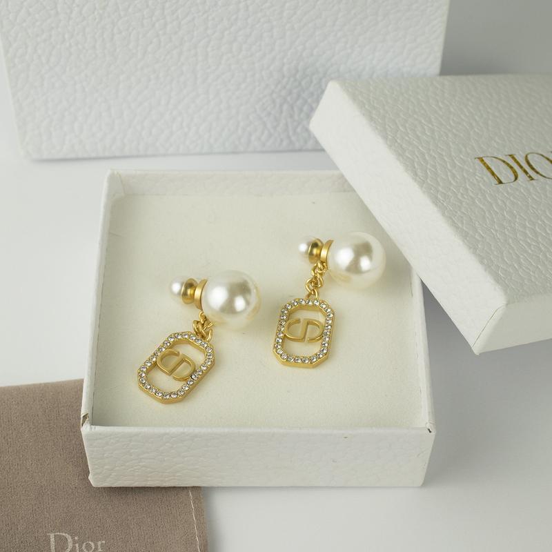 Діор сережки дві перлини з підвіскою в подарунковому брендовому пакованні / діор кульки