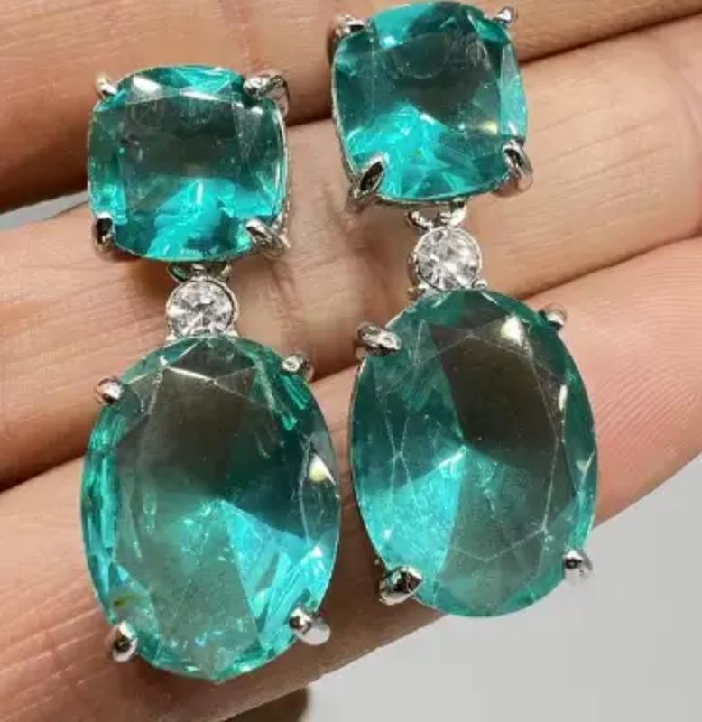 Сріблясті оригінальні сережки із світло зеленими камінцями