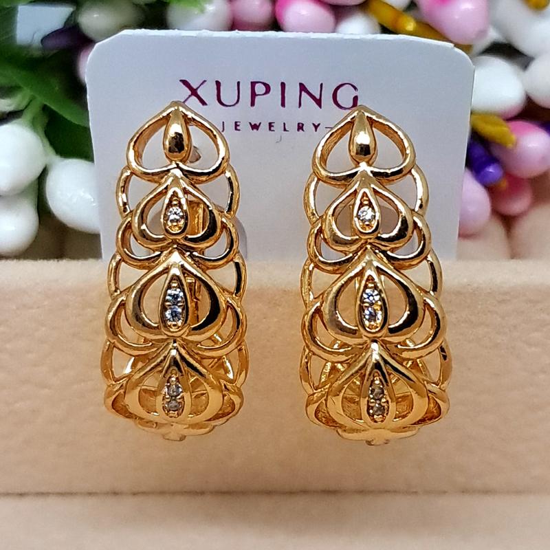Сережки з англійською застібкою із медичного золота xuping. кульчики розмір 21*9 мм, с-410...