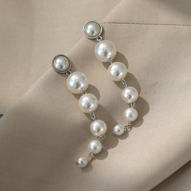 Довгі стильні висячі сережки із імітацією перлин (сріблястий обідок)