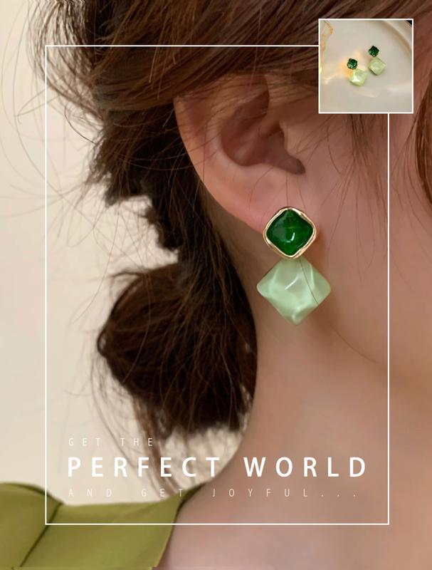 Гарні сережки салатового та зеленого кольору ( красивые серьги - в форме ромбиков )