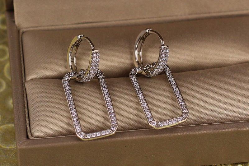 Серьги Xuping Jewelry прямоугольные ободки с камешками в колечках серебристые длина 3 см ширина 1.2 см застежка колечко