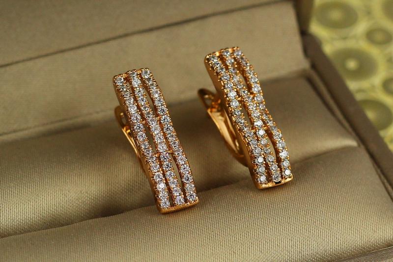 Сережки Xuping Jewelry шезлонг золотисті довжина 2 см ширина 6 мм застібка англійська