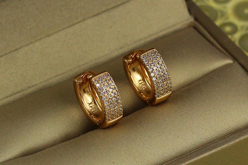 Сережки Xuping Jewelry широкі кільця з камінням золотисті діаметр 1.4 см ширина 6 мм застежка колечко
