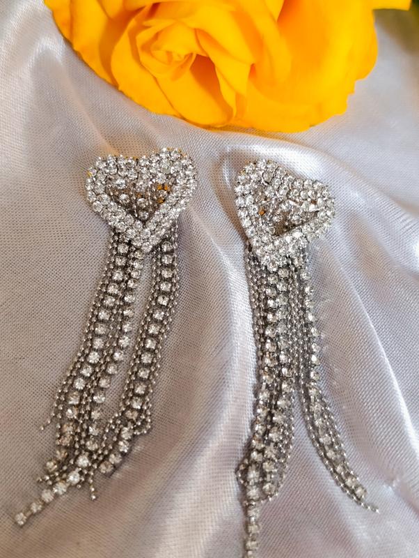 Нарядні довгі сережки із сердечками ❤️з камінням 💎