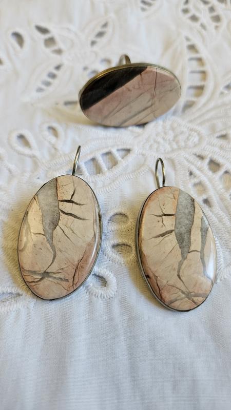 Сережки та каблучка з рідкісної натуральної яшми 3.8 см довжина, ручна робота, з приватної...