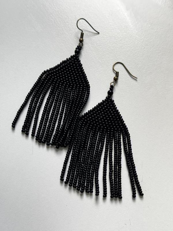 сережки з чорного дорогого та якісного бісеру, ручна робота. стан нових. довжина сережки 9см, ширина 4 см