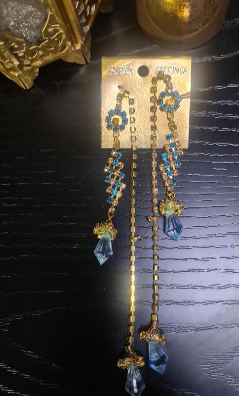 Яркие длинные серьги из голубыми элементами