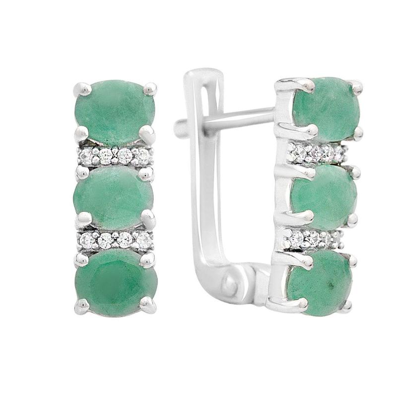 Срібні сережки proba з натуральним смарагдом 2.106ct, фіанітами (2162230)