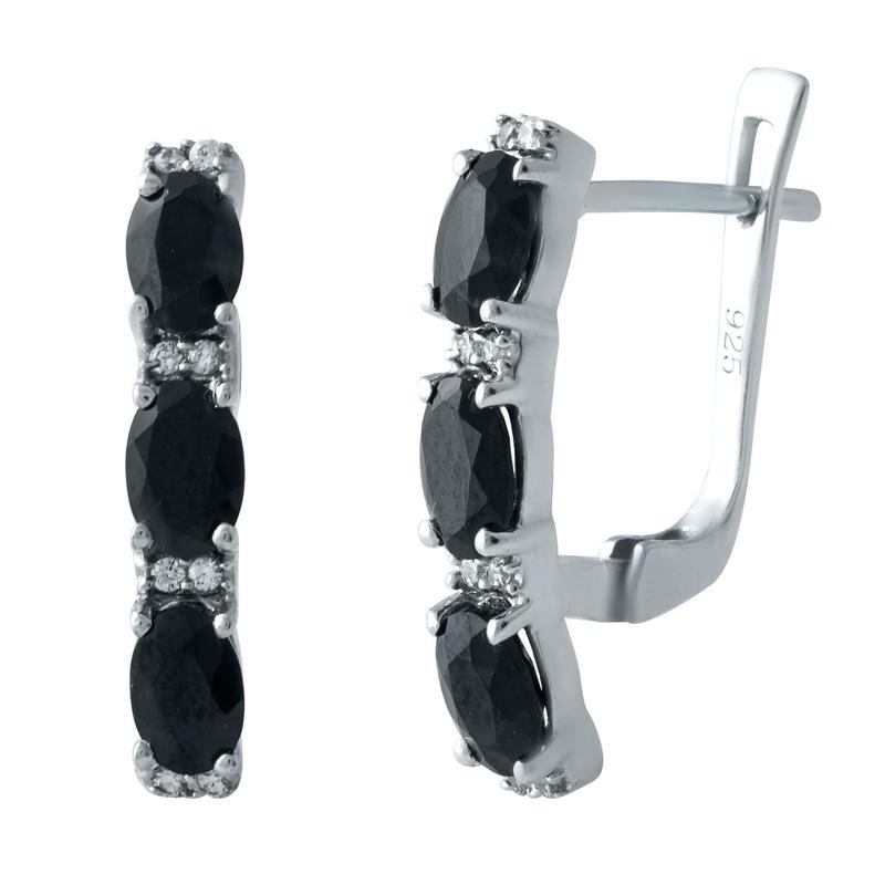 Срібні сережки proba з натуральним сапфіром 4.392ct, фіанітами (1930908)