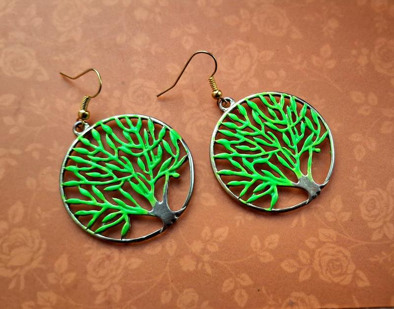 Серьги дерево зелён листочки бохо этно серёжки салатов лист талисман круглые hand made биж...