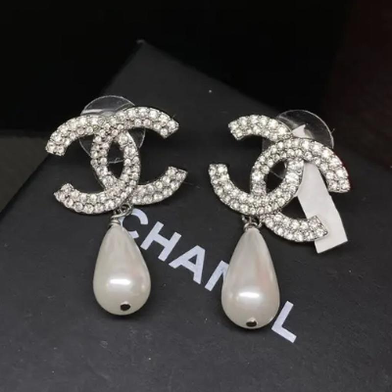 Сережки зроблені з посріблення у вигляді логотипу с логотипом, який усипаний камінням, а також має перлинну вставку у вигляді краплі. відео сережок 980 грн - **********************************************************