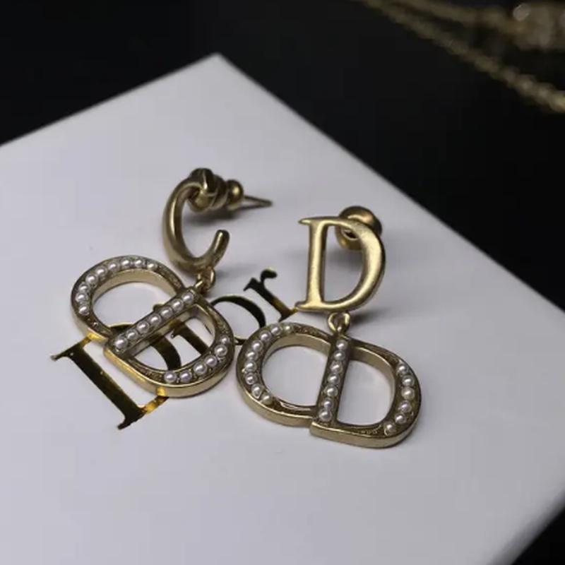 Сережки діор з логотипом і камінням, позолота 18 к