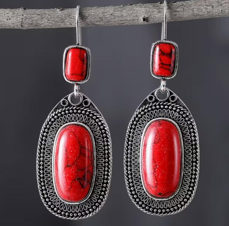 Сережки сріблястого кольору в ретро стилі зі штучним акріловим каменем