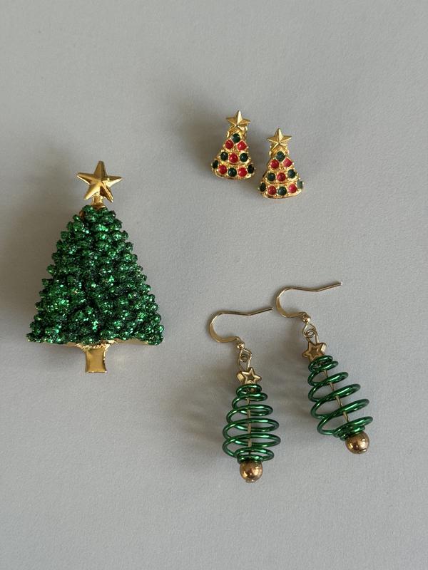 Сет святковий🎄 Свята незабаром, тож встигніть придбати вінтажні прикраси із святковим вайбом для себе або рідних та друзів ✨ ✨80-90-ті роки, American vintage 🇺🇸 ✨Хороший стан Ціна брошки - 550 грн. Ціна сережок зі стразами-250 грн. Ціна сережок-спіралей - 280 грн.