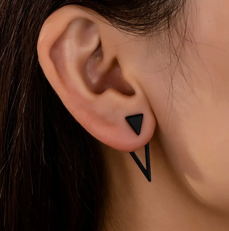 Колір: чорний Склад: біжутерійний сплав; Розміри: Великий трикутник — 2,2 см х 1,2 см Тип замка: Тиск-застібку можна носити як окремі сережки-цвяшки Доставка: Новая Почта, Укрпочта