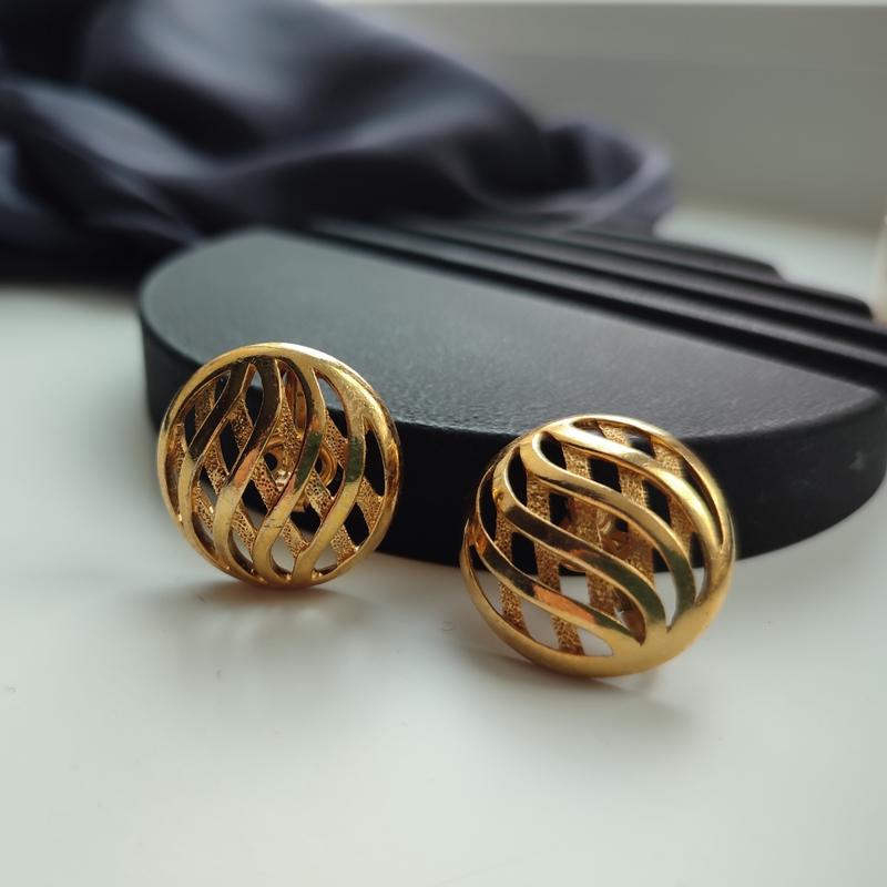 Винтажные клипсы в золотом тоне от легендарного бренда Trifari. Клипсы в идеальном состоянии. Клеймо бренду. Дополнительные фото в личные сообщения.