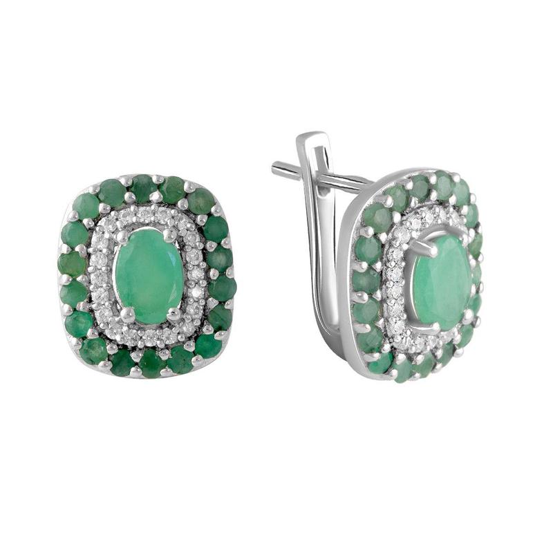 Серебряные серьги ortex с натуральным изумрудом 3.725ct (0466439)