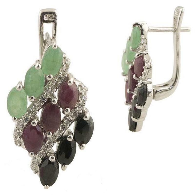 Серебряные серьги ortex с натуральным изумрудом 4.812ct, сапфиром, рубином (0582566)